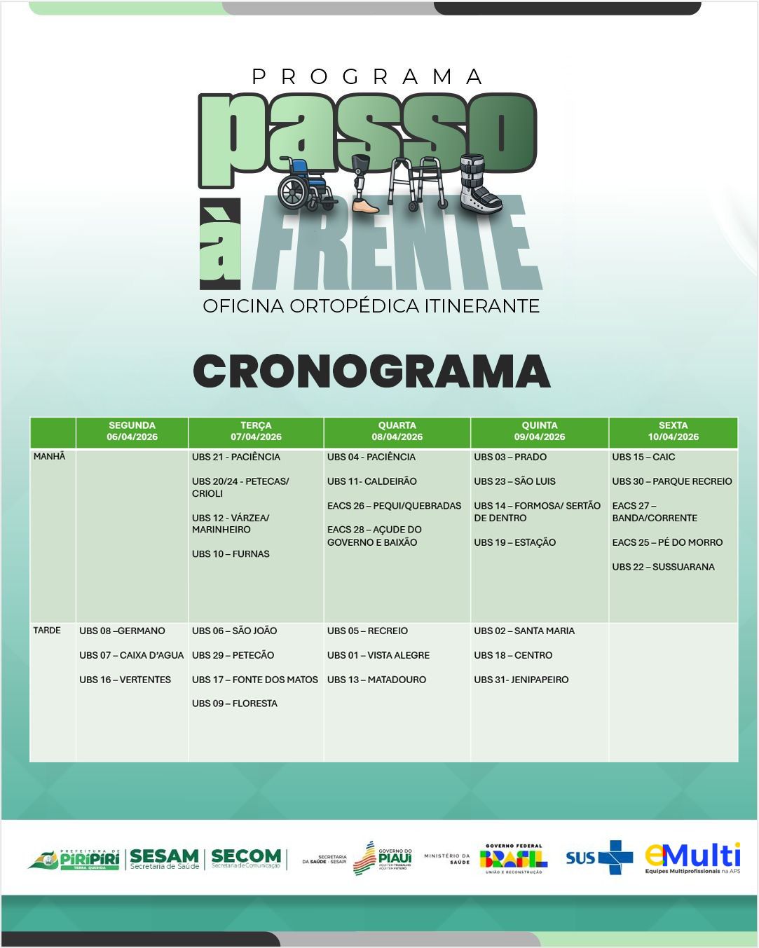A Prefeitura de Piripiri, por meio da SESAM, informa que o programa “Passo à Frente”