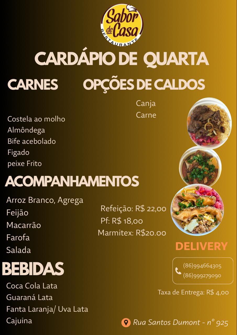 QUARTA-FEIRA,É DIA DE COMIDA BOA NO SABOR DE CASA