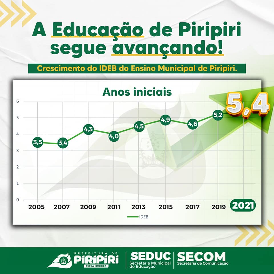 A Rede Municipal de Ensino de Piripiri comemora este excelente resultado como fruto do esforço de todos e de um trabalho pautado na valorização do professor e de uma metodologia pedagógica que direciona o aluno a pensar e também a aplicar os conhecimentos adquiridos em sala de aula. Apesar da melhora e constante crescimento, continuamos empenhados em oferecer uma educação de qualidade e que continue a atingir bons índices, tanto a nível local, estadual e nacional.