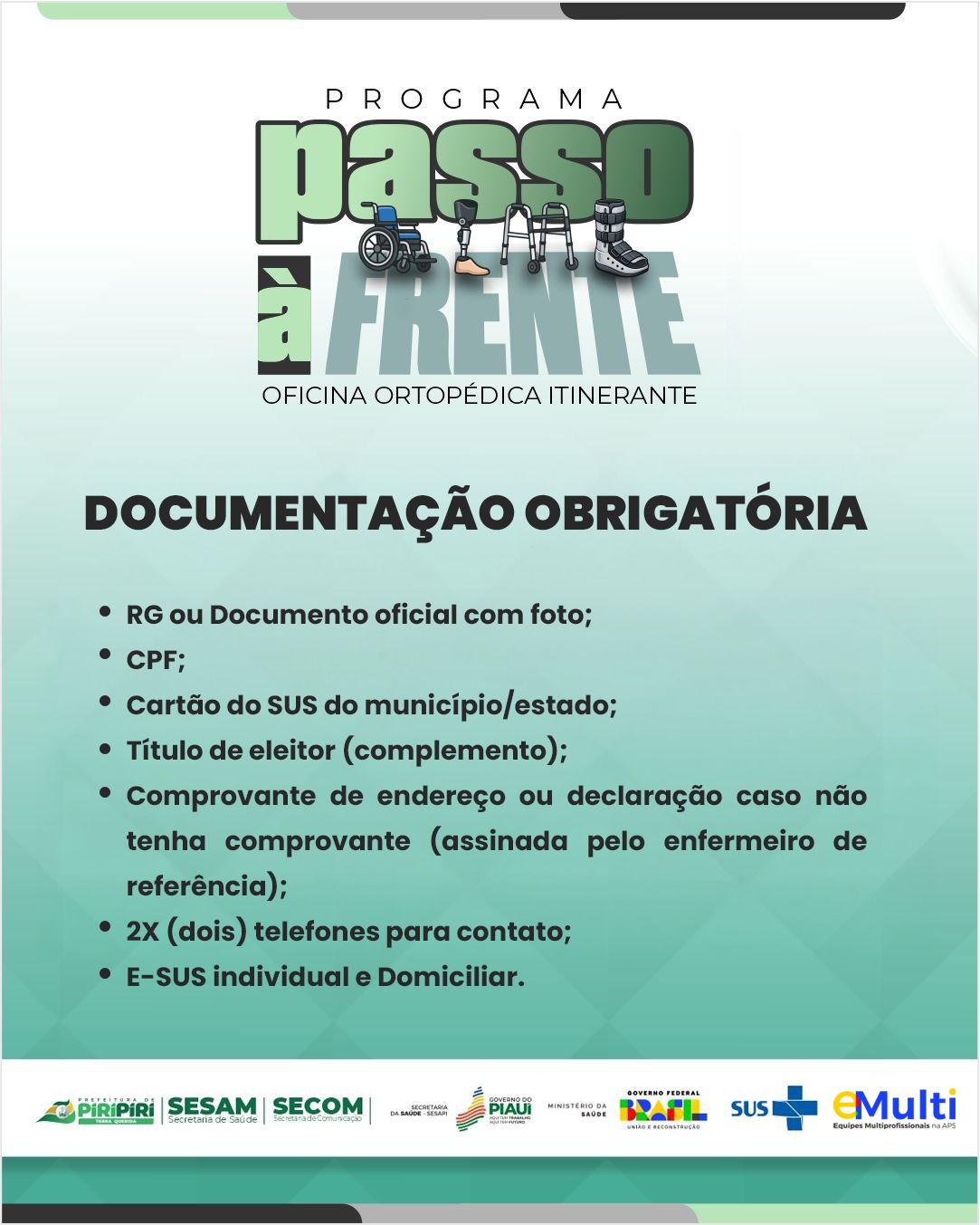A Prefeitura de Piripiri, por meio da SESAM, informa que o programa “Passo à Frente” já está com cronograma definido e será realizado ao longo da semana no Centro a Integrado de Saúde do município.