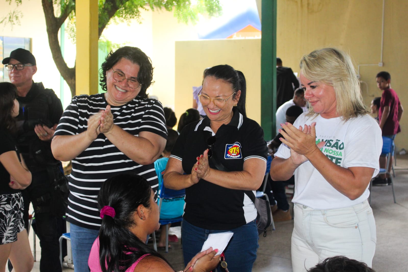 “Hoje foram atendidos alunos com consultas oftalmológicas e já fizemos cadastros para cirurgias de catarata e pterígio. Também fizemos doação de cento e cinquenta óculos para alunos que possam ter problemas de vista.”, disse a prefeita Jôve.