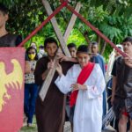 Nesta quarta (13/04), alunos do Centro Educativo Municipal (CEM) Irmã Ângela encenaram a Paixão de Cristo por meio de uma Via Sacra. A encenação apresentada pelas crianças e adolescentes foi assistida pelos pais dos alunos, profissionais da Educação e gestores da Secretaria Municipal de Educação (SEDUC).