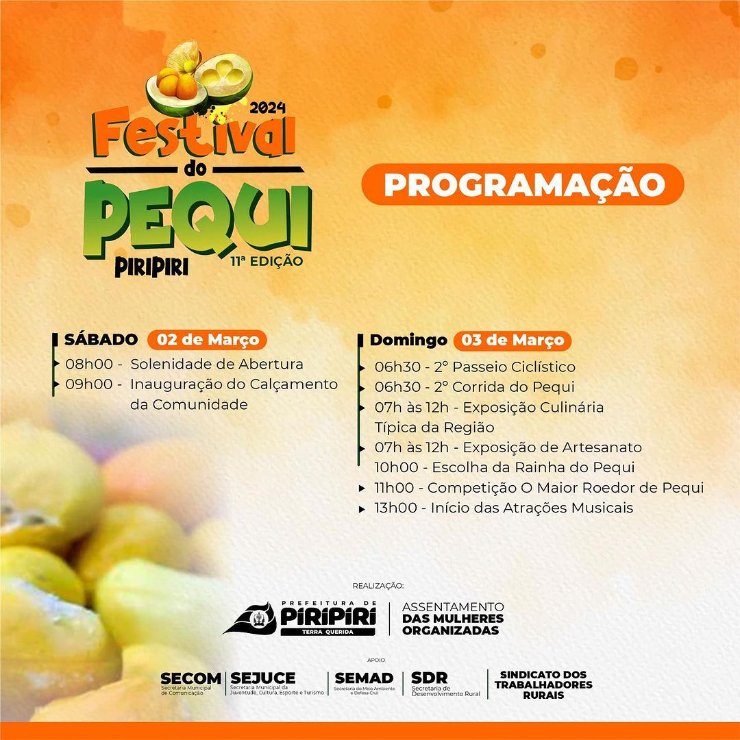 O Festival do Pequi é um evento realizado pelo Assentamento das Mulheres Organizadas com apoio da Prefeitura de Piripiri!!
