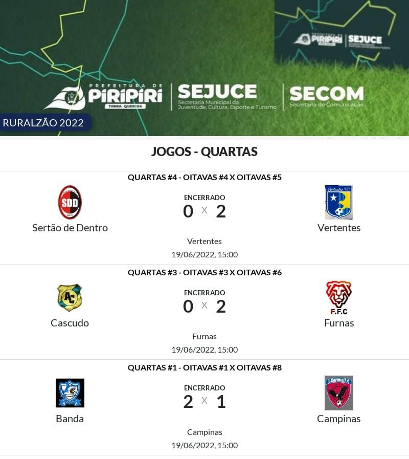 Furnas elimina o Cascudo. Confira os resultados dos jogos das quartas de final do Ruralzão 2022