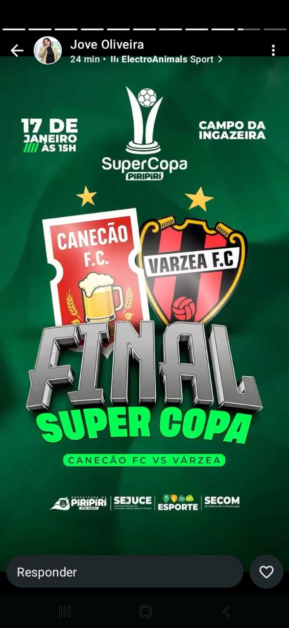 Acontece hoje na comunidade Ingazeira,a grande final da Supercopa Piripiri,evento da Prefeitura,realização da SEJUCE.A prefeita Jôve e sua comitiva,estará presente.