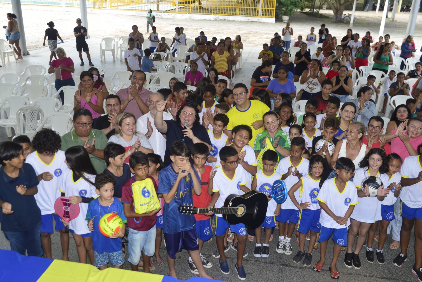 A secretária Tânia Marilda Monteiro fala que há 3 anos tem essa parceria com objetivo de fomentar a inclusão social. “Pelo terceiro ano estamos juntos nessa parceria com a FENABB (Federação Nacional das AABBs), juntos para levar às crianças das escolas municipais oportunidades e garantir direitos. São 125 alunos que recebem aulas esportivas, como natação, e aprendizagem”, disse.