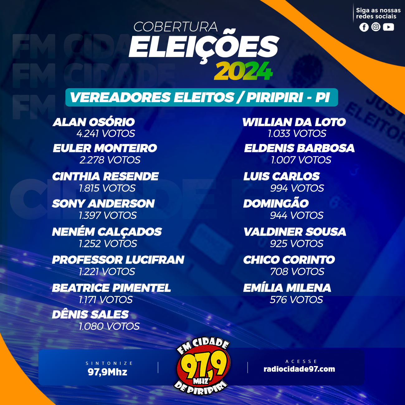 Câmara de Vereadores de Piripiri passa por 53%% de renovação e apenas 7 se reelegem; veja lista