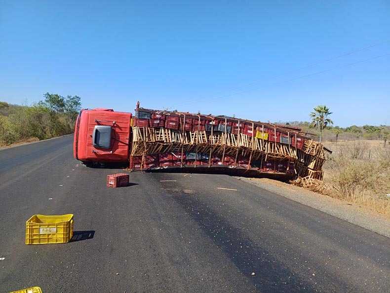 De acordo com a Polícia Rodoviária Federal (PRF), o acidente ocorreu quando um dos caminhões colidiu na traseira do outro durante uma manobra de mudança de faixa. O impacto da batida fez com que um dos veículos de carga tombasse na pista.