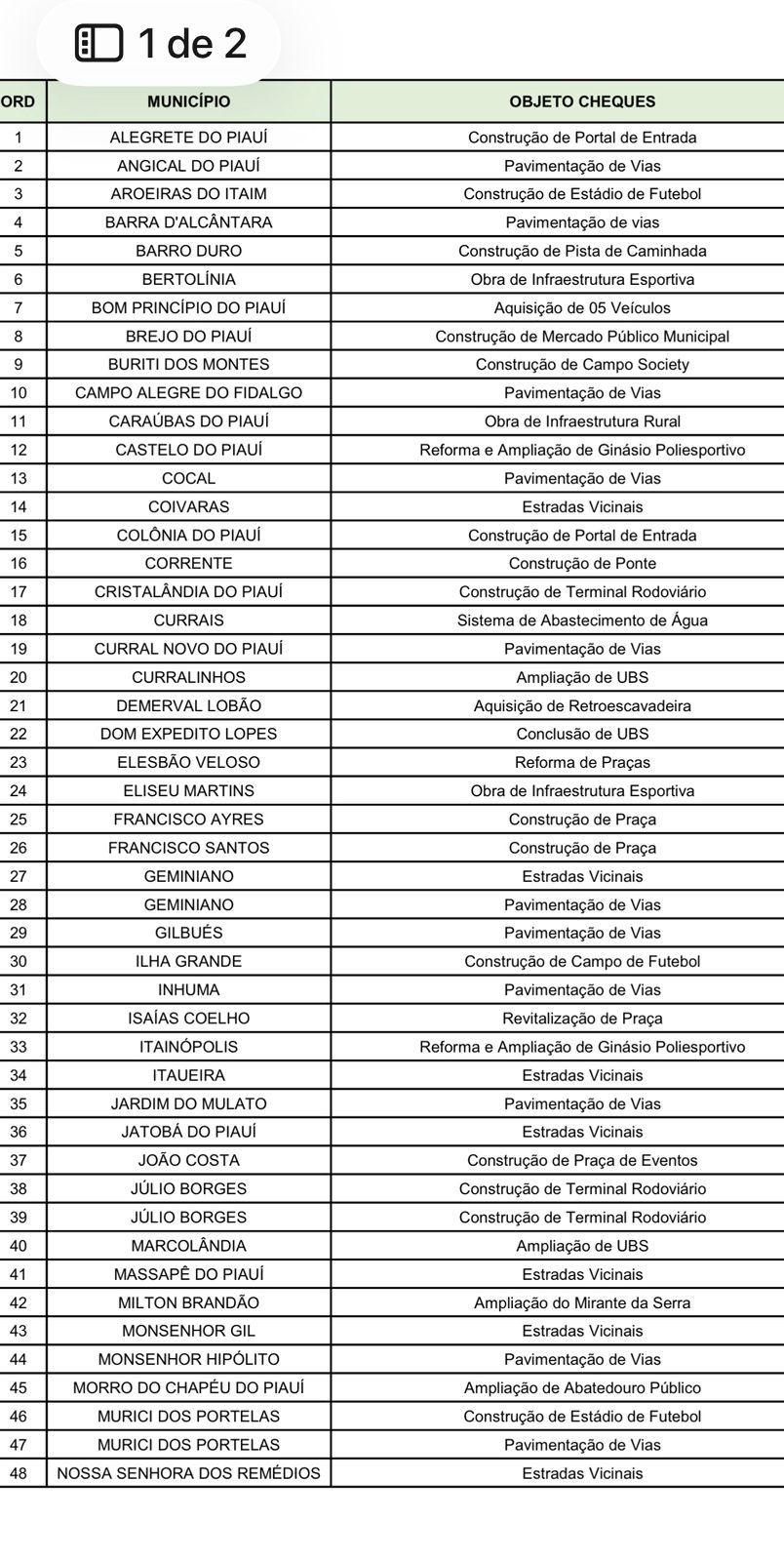 “É sempre um prazer receber cada um dos prefeitos, representando as pessoas de suas cidades. Esses recursos se transformaram em benefícios, para a área da saúde e infraestrutura, chegando a população de praticamente todo o Piauí”, explicou o senador.