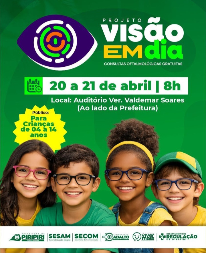 A Prefeitura Municipal de Piripiri,está realizando por meio da SESAM,uma nova edição do Projeto Visão em dia.Atendendo crianças e adultos,com consultas,cirurgias e limpeza de lentes.